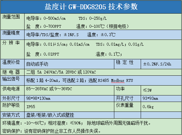 名称:工业在线电导率仪控制器TDS盐度计电导率电极海水盐度GW-DDG8205