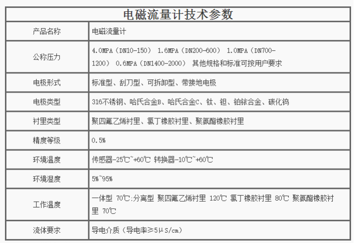 宽,最大可达3m,输出信号和被测流量成线性,精确度较高,可测量电导率≥5μs/cm的酸、碱、